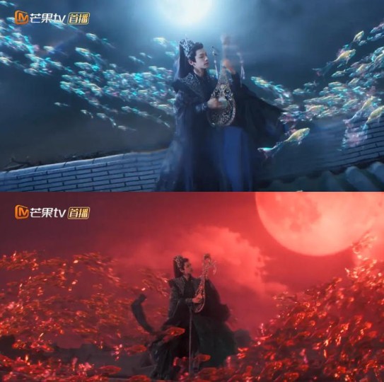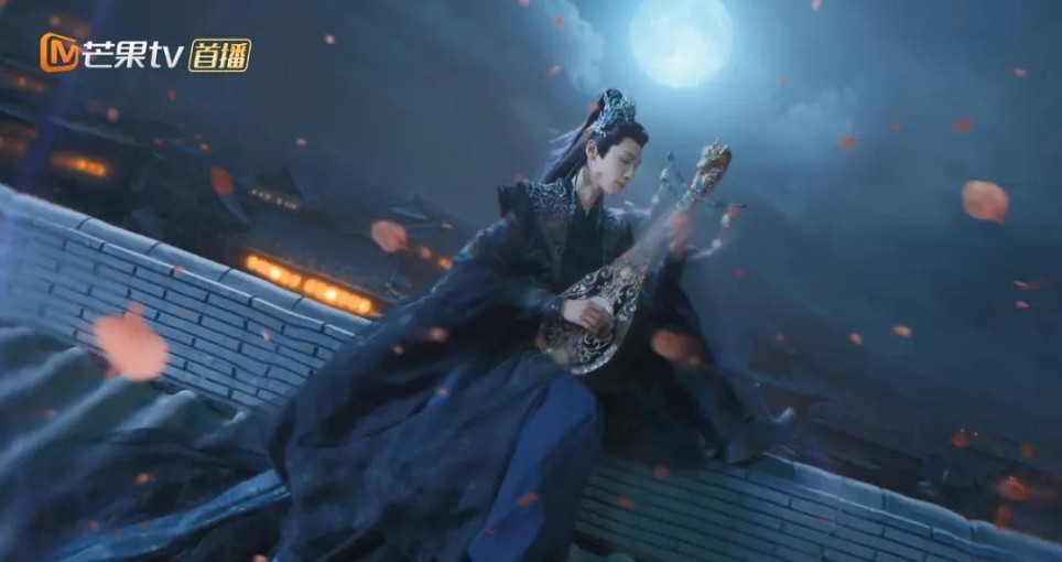 房顶琵琶“音杀阵”,他从幽暗处走来,静谧的月光随着音律的变化,直接变成血月。