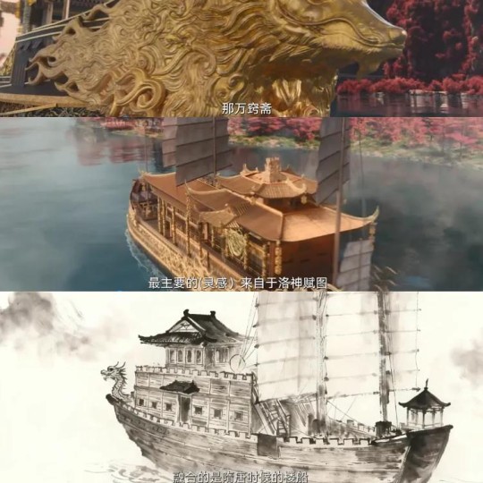 万窍斋,最主要的灵感是洛神赋图,融合了隋唐时期的楼船。