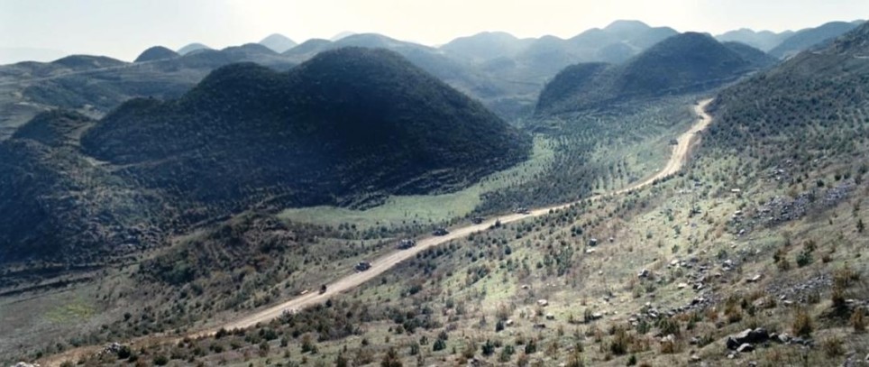 《日掛中天》与蔡尚君前作《人山人海》截然不同,这可能标志着一种创作的转向。《人山人海》在风格上呈现为一种冷漠僵直,还原为一种静置的社会写实。此外通过省略叙事和简化对白的方式,在壮阔的地景和暴力的氛围下将人物异化为社会景观中的符号,“底层复仇”本身也成为了景观的一部分;而它终归也是一个类型化的动作,无法脱离从欧洲到东亚的极端电影语系。影片依赖着那些精致的开放式构图和大景别的固定镜头组,强调疏离感的场面调度,主动画外空间被缓慢、悠长的摇摄不断寻觅与扩写,这都是国际影坛熟悉的镜头语法。《人山人海》正是在这样一个既定框架内精巧地完成了一部更容易被西方世界所识别、所认同的作品,让西方对于中国独立艺术电影的预期与之重合,在影像上更符合国际艺术片市场的某种审美范式。