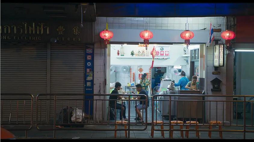 《爱情万岁》更将这一手法推向极致。此片设置了三个彼此隔绝的角色:一名房屋中介、一名地摊小贩,以及担任殡葬用品推销员的小康。他们交错轮舞(chassés-croisés),共享同一套公寓的钥匙,却几乎从不交谈(或只说极少的话)。悬置了语言,叙事空间便转化为一个由姿态主导的剧场,在那儿,(无)举止与姿势、行径与回避,重新获得了默剧的特质。这是一种“有声的无声电影”,那些具体的,不间断的,常常是突兀的声音(拖鞋的吱呀声、床架的咯吱响)取代了语言,构成了其声学质地。