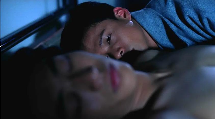 在内心深处的苦闷之底,蔡氏的主人公遇见了一种发源于其自身异化并不断发酵的情色母题。这解释了为何蔡氏的电影,和有些人的观点相左,并不那么依赖于抽象。实际上,正是沿着孤绝与沉默的小径,这种始终无法触及对象的情色欲望才逐渐膨胀,且只以制造距离的方式进行表达,这便是欲望的升华或是向外投射。在《青少年哪吒》和《爱情万岁》中,小康两次站在正在做爱的情侣旁,制造着距离,“参与”了这一过程。可以特别关注《爱情万岁》中那场令人惊愕的戏:小康藏在床底,一边偷听另一对男女交合的声音一边手淫。这一场景刻画出了一组三元性爱关系,幻想的向外投射就是如此发挥作用的。在《河流》中,小康那饱受疼痛侵磨的身体也找到了一种慰藉:不仅是在洗浴店的滚滚蒸汽中(小康在走廊与隔间之间徘徊,周遭满是放任自己无度窥视他的男顾客,在此欲望如水雾般被升华了),更是在那炽烈的乱伦情欲中。影片的所有尺度都被彻底扰乱了——对,蔡氏的电影做到了这种“彻底”。